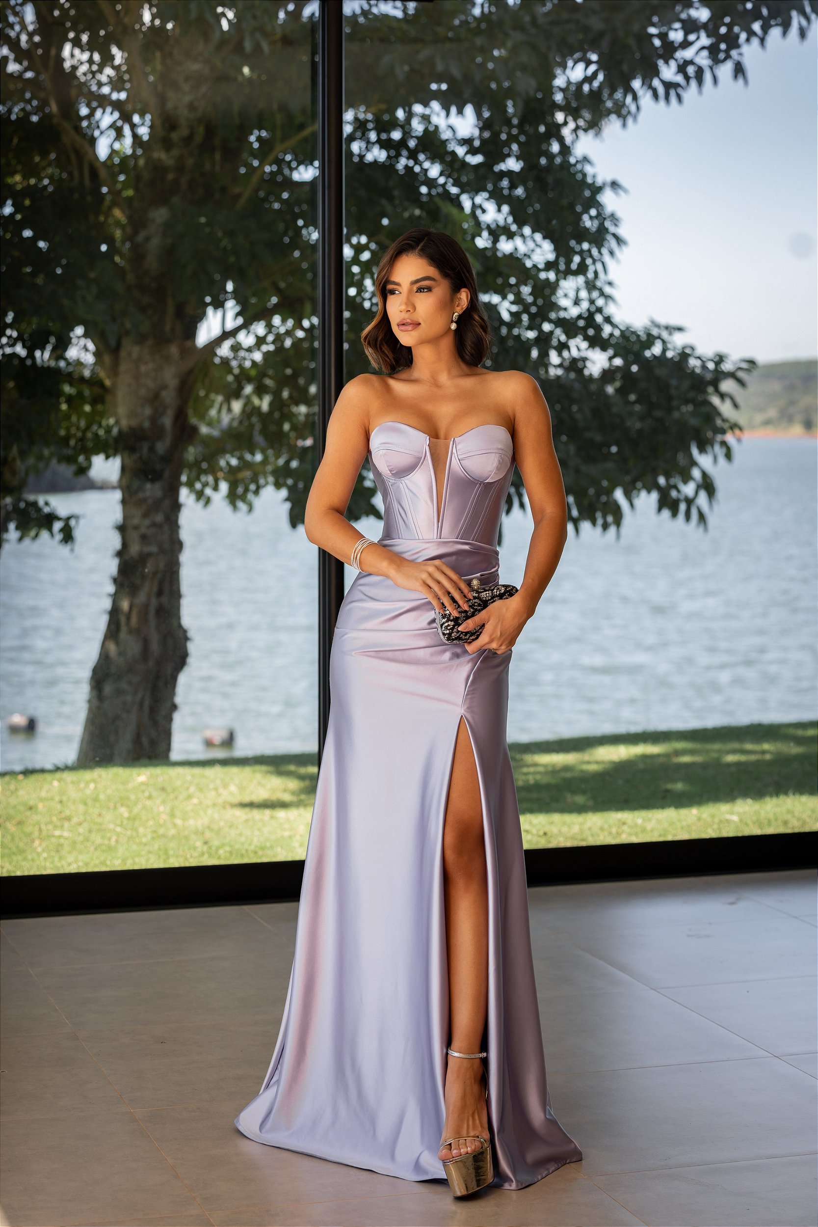 Para praticidade e melhor acabamento, o modelo conta com zíper invisível nas costas.